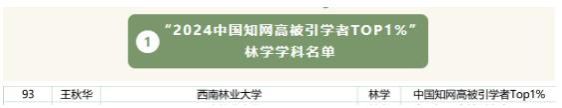 在“2024中国知网高被引学者 Top 1%”预发布名单中,beats365官方网站王秋华教授入选林学学科Top 1%的140位学者之一。