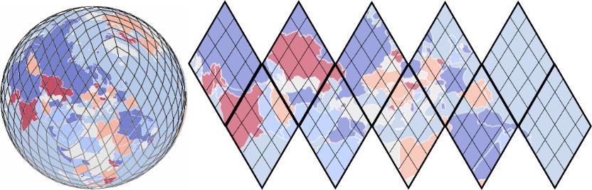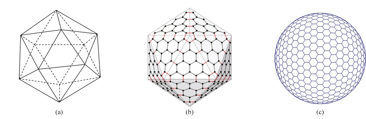 图3. 研究对象——基于Snyder等积投影的六边形离散格网