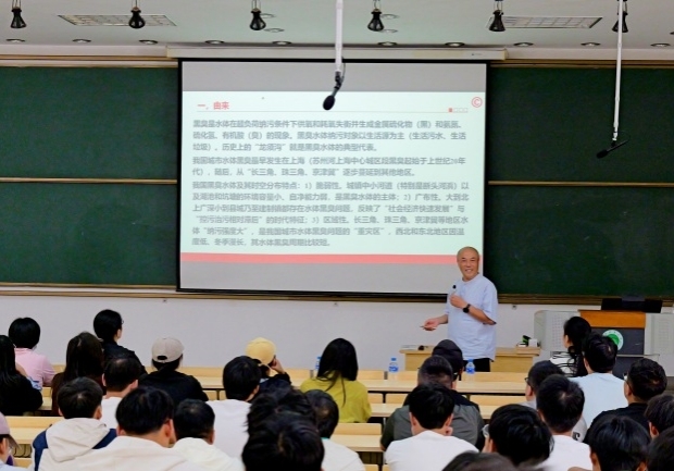 黄民生教授在报告中,围绕城市黑臭水体的成因、治理技术的核心原理与发展前沿,以及具体的工程实践案例进行了系统而深入的讲解。黄教授结合自身丰富的科研与实践经验,生动阐述了治理黑臭水体的关键在于源头控污,特别是对生活污水与生活垃圾的有效管控。整场讲座案例详实、逻辑清晰,既有宏观视野,又有技术细节,极大地拓宽了师生们的学术视野。