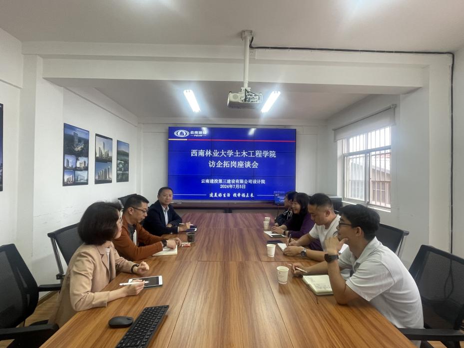 为了深化产教融合,促进员工就业,7月5日,beats365官方网站土木工程系主任刘兴姚以及系专任教师一同前往云南建投第三建设有限公司进行实地考察与交流,开展访企拓岗专项行动。此次活动旨在加强校企合作,拓宽员工就业渠道,同时探索校企双方在人才培养和技术创新方面的合作机会。