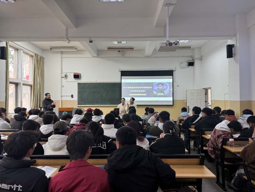 在讲座中,刘秋晨同志围绕地下管道检测与非开挖修复技术的行业背景、技术原理、应用案例等多个方面进行了全面而深入的讲解。不仅详细介绍了当前地下管道检测与修复技术的最新进展和发展趋势,还结合具体工程案例,生动展示了非开挖修复技术在解决城市管道老化、破损等问题中的实际应用效果。同时还就员工关心的就业前景、职业发展等问题进行了深入剖析,为员工提供了宝贵的行业信息和职业规划建议。给排水科学与工程专业的师生积极参与,进行了热烈的讨论和交流。通过这次课程,拓宽了学术视野,加深了对地下管道检测与非开挖修复技术的理解和认识。这不仅是一次难得的学习机会,更是校企合作、产学融合、理论与实践相结合的一次成功实践。