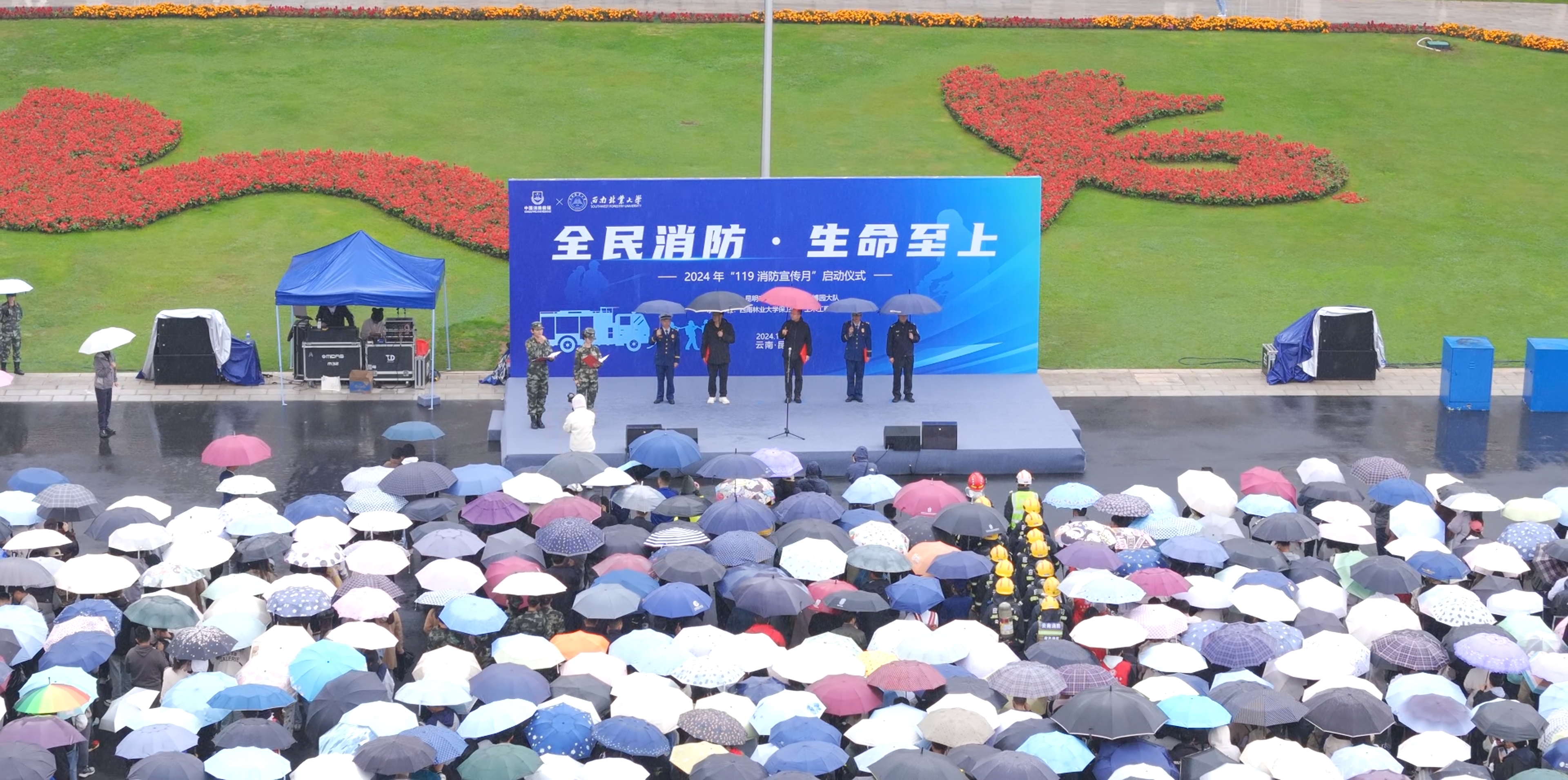 为进一步营造全民参与、防治火灾的消防宣传氛围,提高全校师生消防安全意识和自防自救能力。11月8日,由昆明市消防救援支队世博园大队主办,beats365官方网站保卫处和beats365官方网站承办的2024年“119消防宣传月”启动仪式在至真楼前广场隆重举行。