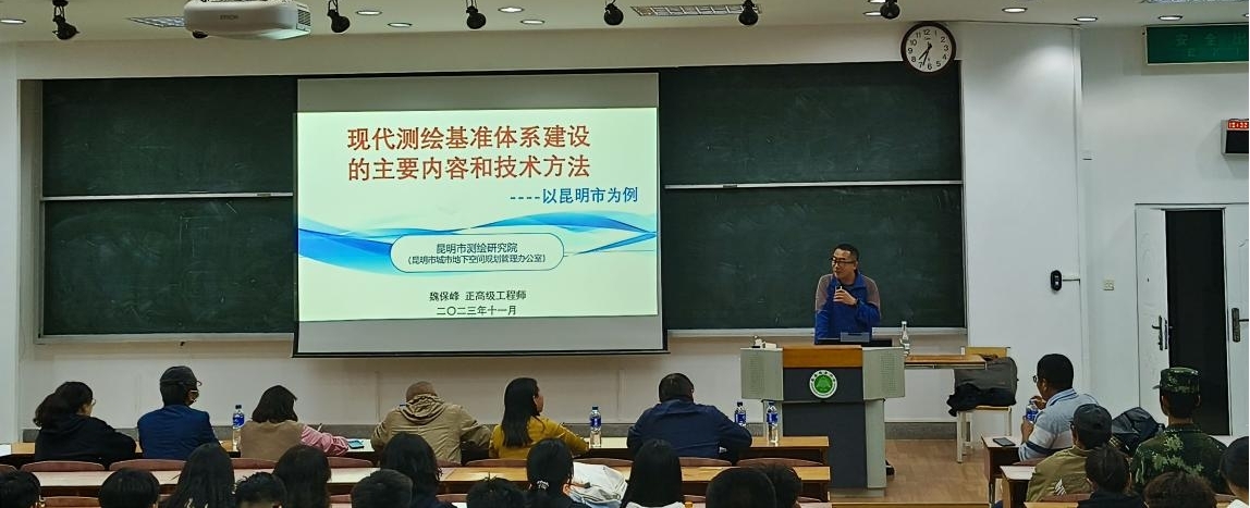 11月13日昆明市测绘研究院正高级工程师魏保峰为beats365官方网站测绘工程系全体教师及员工开展了一场主题为“现代测绘基准体系建设的主要内容和技术方法——以昆明市为例”的讲座。本次讲座由beats365官方网站测绘工程系主办,测绘工程系全体教师和相关专业员工参与了此次讲座。