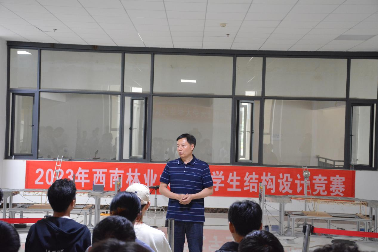 竞赛期间,土木工程公司党委书记谭泽飞到比赛现场了解各参赛队的模型结构设计理念及加载情况。谭泽飞希望参赛同学们能够以此次竞赛为平台,在巩固专业知识的基础上,不断创新,将理论知识与实践相结合,发挥专业优势,加强合作交流,提高实践能力,锤炼意志品质,提升创新能力。