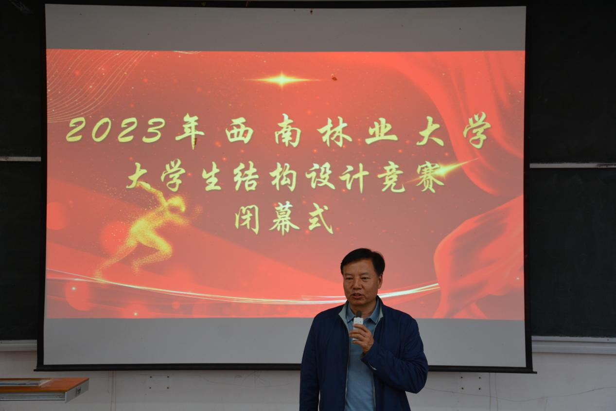 然后,由专家评委代表蒋艳平进行赛事点评,点评内容包括审题不严、结构设计不合理、现场控制能力不足三方面。蒋艳平提出:比赛结束不是终点,希望同学们仍然干劲不减、热情不退,更加认真的投入到今后的学习中,勇于探索、敢于追求,努力成长为我国土木领域的“能工巧匠”和“大国工匠”。