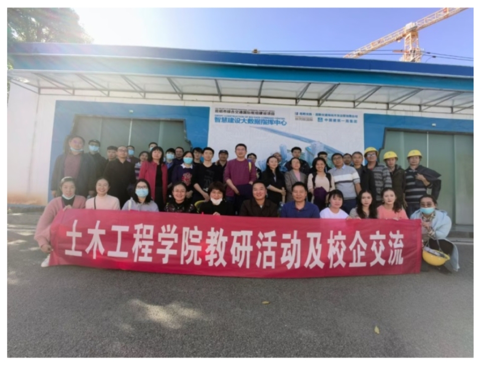 为调研学习最新的施工现场精细化BIM管理技术,促进BIM相关课程建设,加强校企交流和合作,beats365官方网站于2021年11月5日下午组织教师和部分研究生一行30多人赴昆明市综合交通国际枢纽建设项目参观学习。