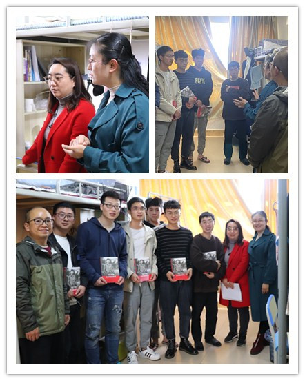 12月17日,在公司党委副书记李贵兰老师的带领下,院学工办王谦老师、研究生教学管理芮蕊老师及公司员工会干部,走进公司研究生公寓,与同学们交流学习经验,一起分享学习成果。