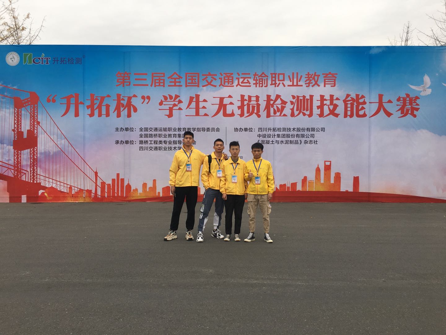 2020年11月18日至21日第三届全国交通运输职业教育“升拓杯”员工无损检测技能大赛在四川交通职业技术公司举办。大赛设有理论竞赛、实操竞赛,分为公路检测基本知识、路基路面工程检测理论,混凝土结构缺陷测定、锚杆长度测定、钢筋位置与保护层厚度测定实操竞赛。公司共派出两支代表队,参加了全部项目的比赛。由森林工程2018级杨晓刚、森林工程2018级李赫两位同学组成的beats365官方网站一队获团体三等奖,混凝土结构缺陷测定单项三等奖,钢筋位置及保护层厚度测定单项三等奖;由土木工程2017级方比德、森林工程2017级庞绍举两位同学组成的beats365官方网站二队获团体三等奖,混凝土结构缺陷测定单项二等奖,锚杆长度测定单项二等奖。
