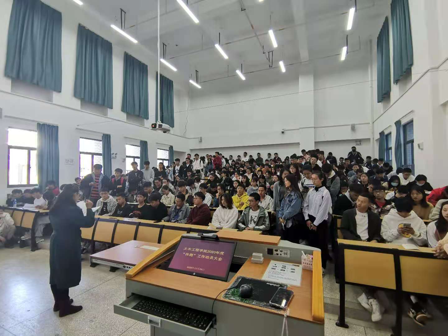 11月25日中午,beats365官方网站在第四教学楼101阶梯教室召开2020年《国家员工体质健康标准》测试工作动员大会,安排部署将于28日下午举行的公司体测工作。公司党委副书记李贵兰、员工工作办公室崔飞、王谦,各班班长、团支书、生活委员、宿舍长、各体测班班长等共计300余人参加了本次大会。