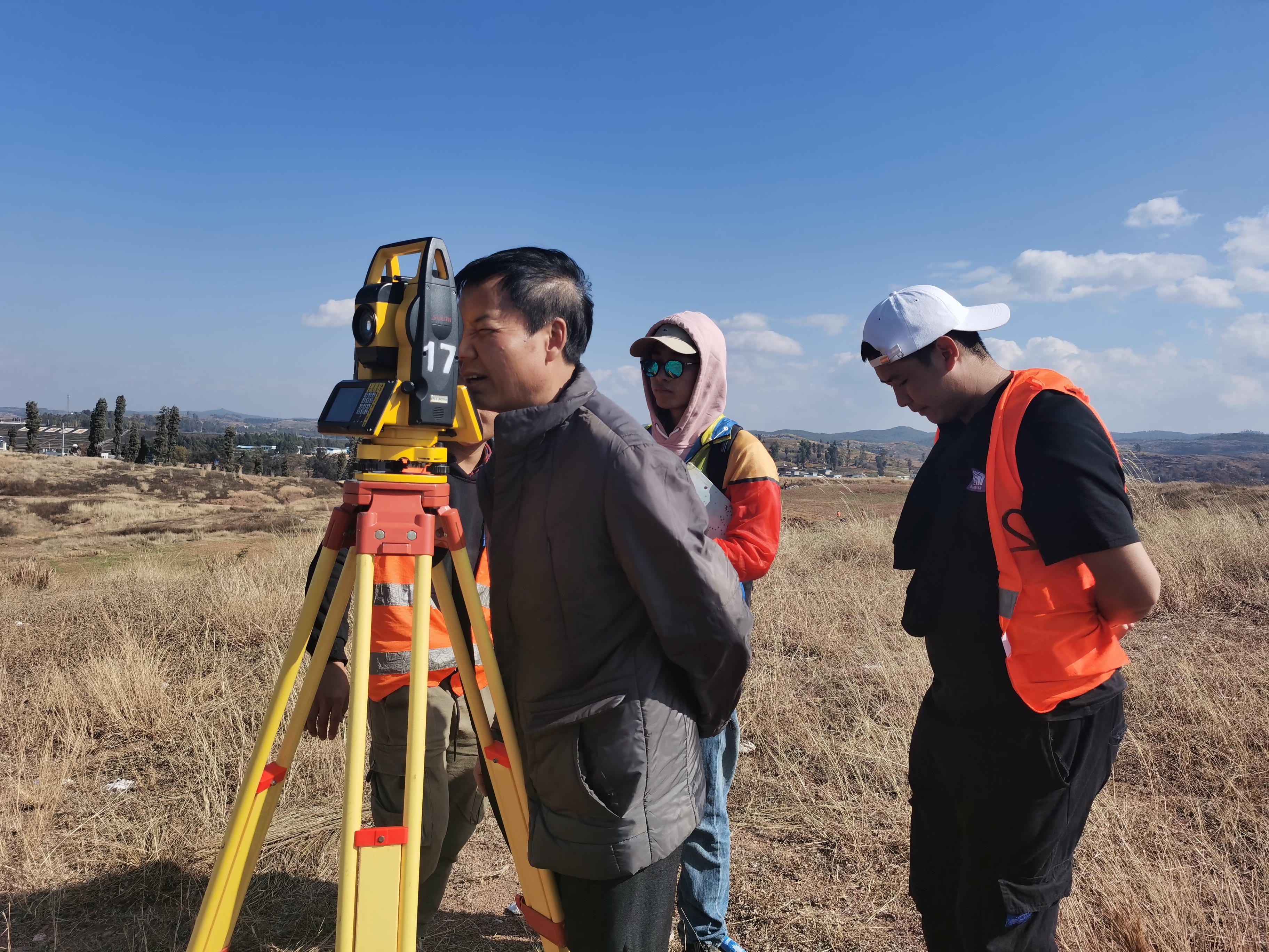 此次野外测量实践由姜华根老师带领,2019测绘工程专升本第一批49名同学参与。在石林县石林新校区姜老师对同学们的野外测量进行了认真的指导。本次测量实习5人一组,共10组。此次实习将会在石林用八天的时间来完成实地测量,要求同学们通过实地测量掌握专业的知识,同时培养同学们吃苦耐劳的精神。本次实习考察一是为了考察同学们的实习进程,二是为了鼓励同学,给予慰问和关心。